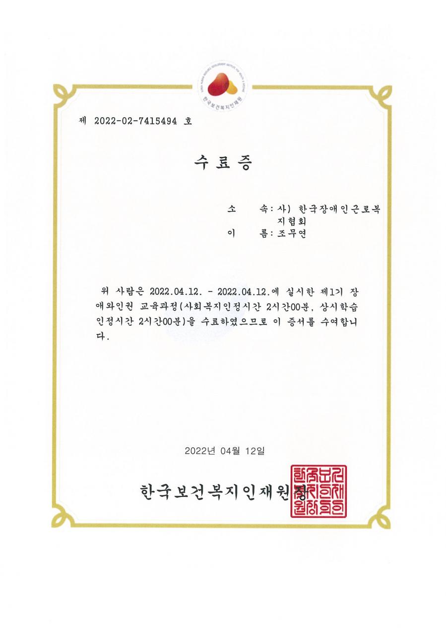 • 한국보건복지인재원 수료증