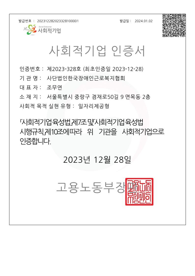 23년 12월 28일 사회적기업 인증