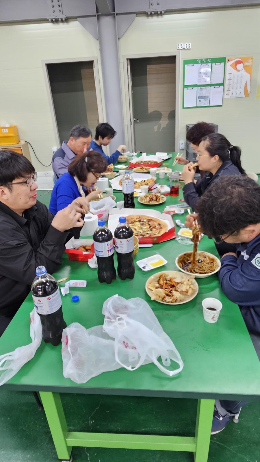 역시 파티엔 피자죠~! 다같이 맛있게 점심을 먹고